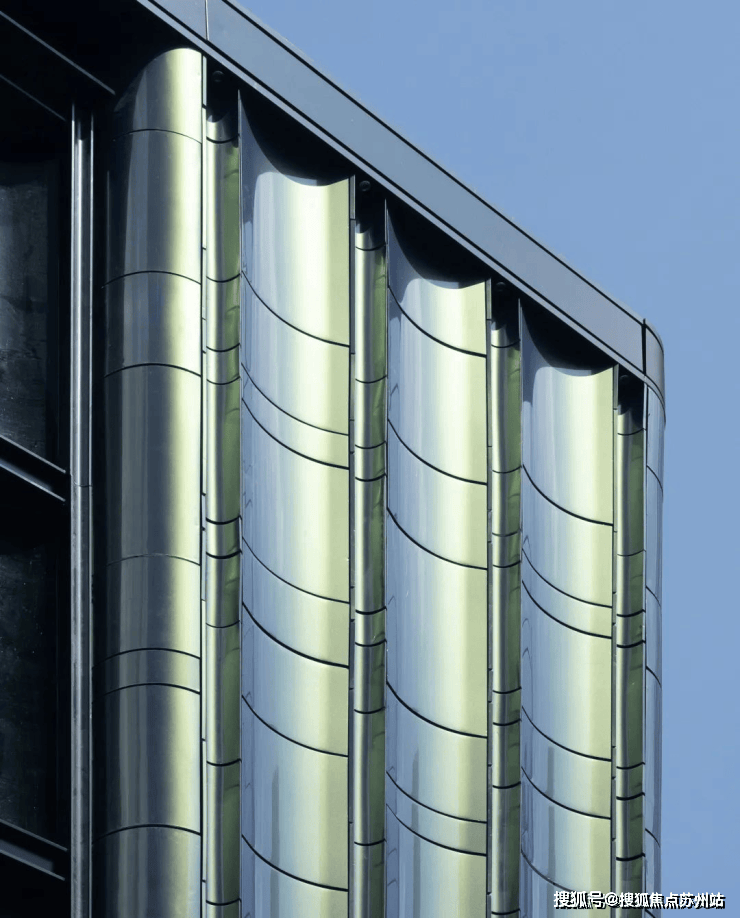 使用稠密弧线工艺,如转角玻璃阳台、曲面铝板、墙身线条以及门框线条等,向邬达克化妆艺术派的计划美学致敬。
