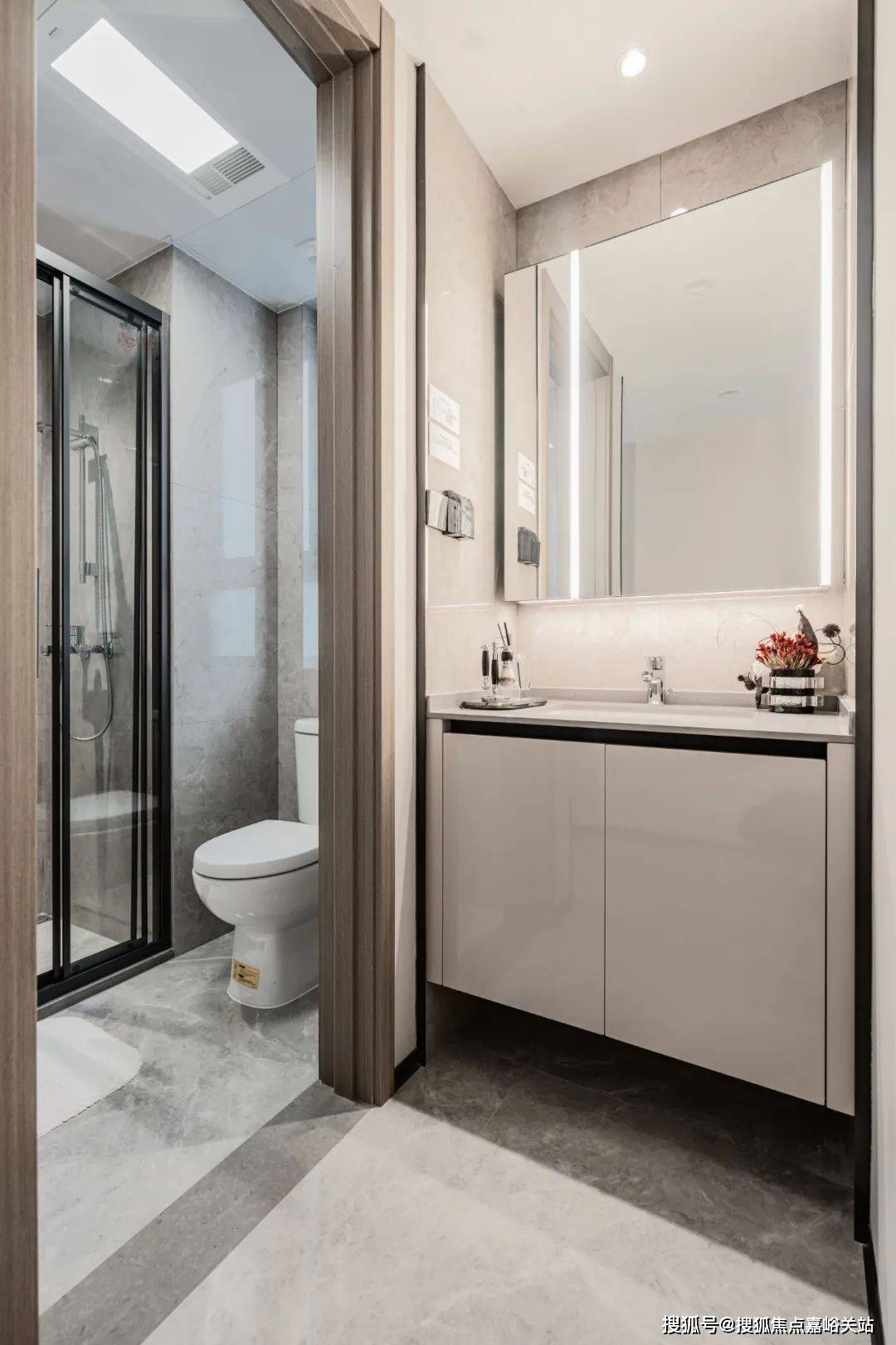 项目装备了科勒(或划一品牌)的马桶、台盆、龙甲第,更设立有暖风机,定制卫浴柜,时尚体面,适用性也卓殊高。
